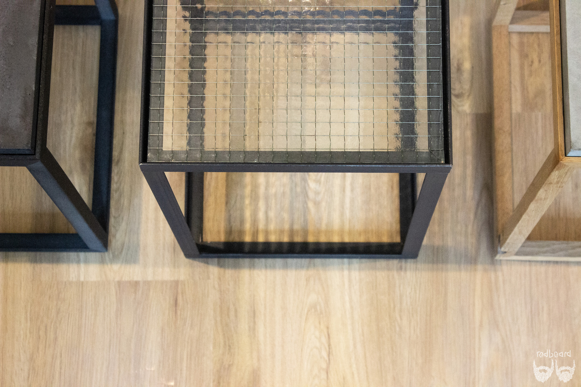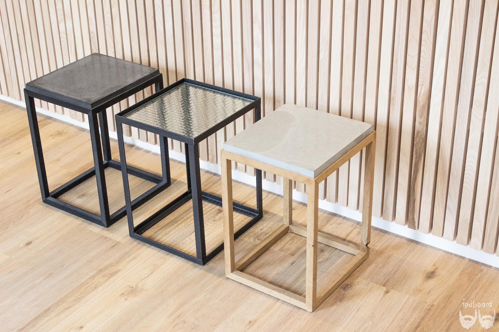 platte_beton grau | beton antrazith | drahtglasgestell_eiche | MDF schwarz | stahl32cm x 28cm x 40cm