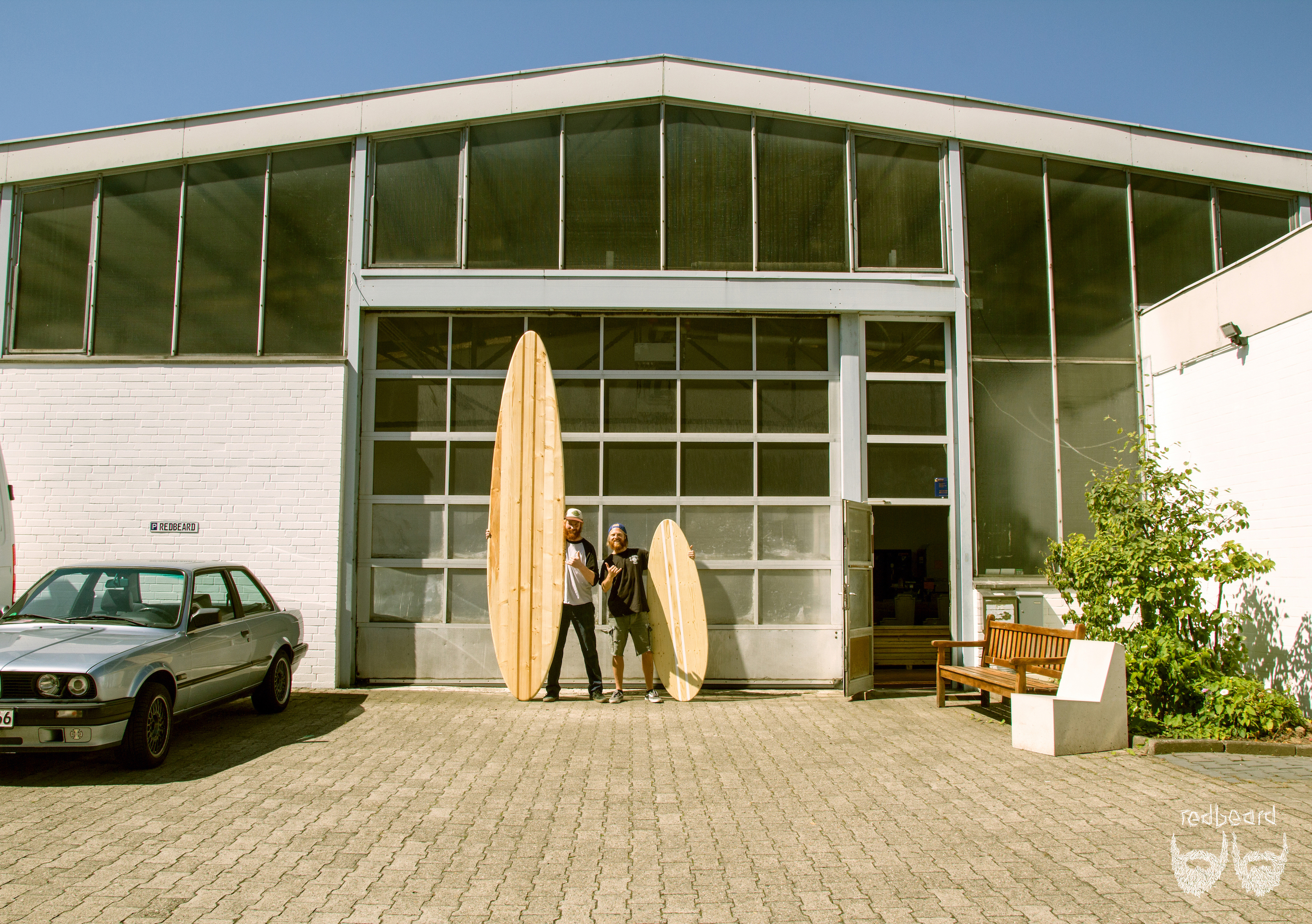 um den typischen old-school surfboard stil zu treffen haben wir zwei streifen massive eiche längst durch das board laufen lassen.