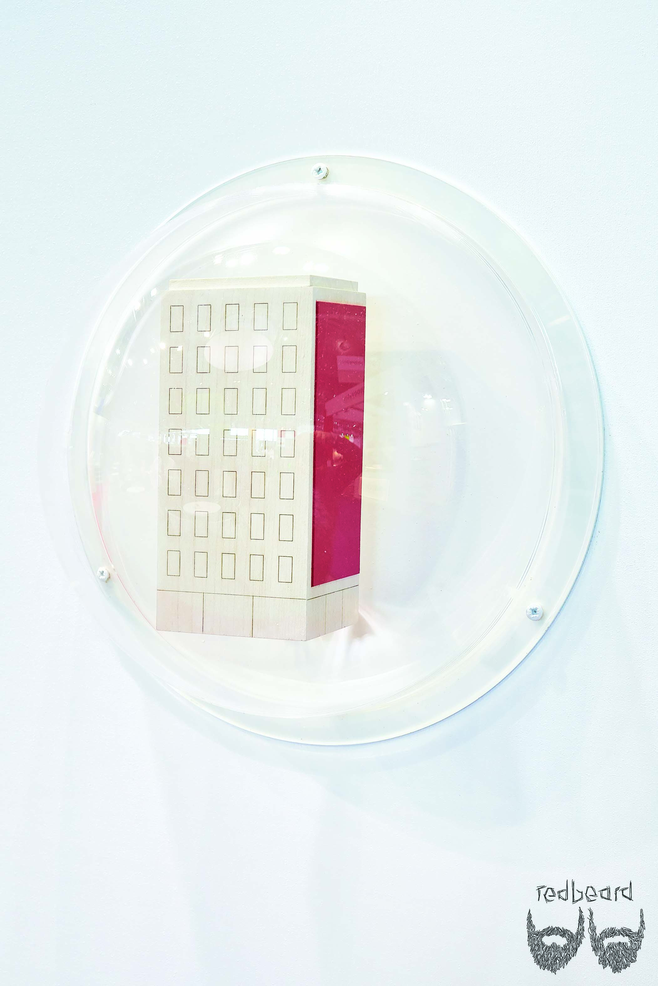 messemodell für den membranhersteller low and bonar maßstabslos massivholz, acrylkuppel