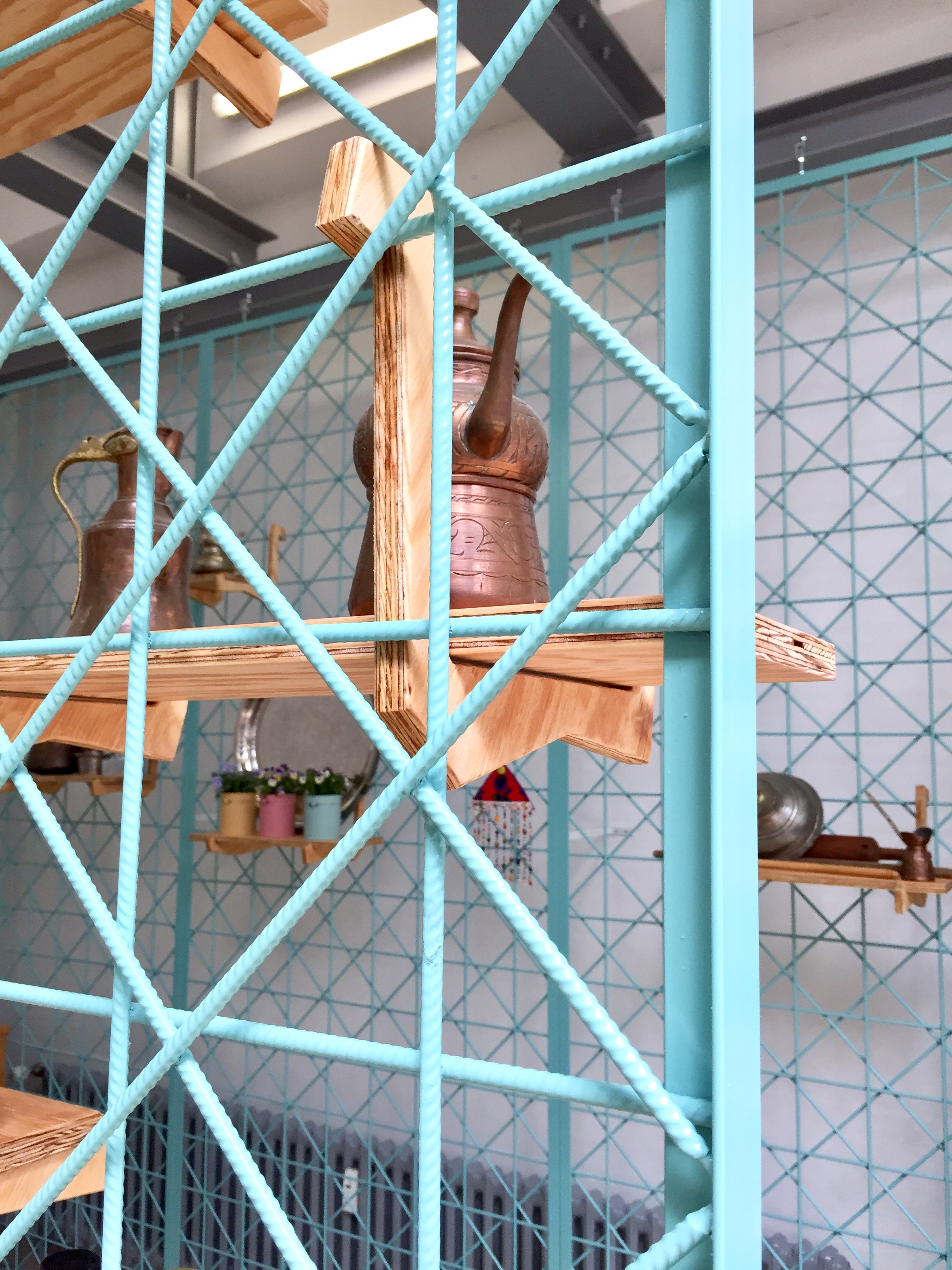 durch überlagern von mehreren bewehrungsstahlmatten haben wir eine funktionale gitterstruktur geschaffen, welche mit ihrem muster und farbigkeit an fassadenelemente aus der türkei erinnert.