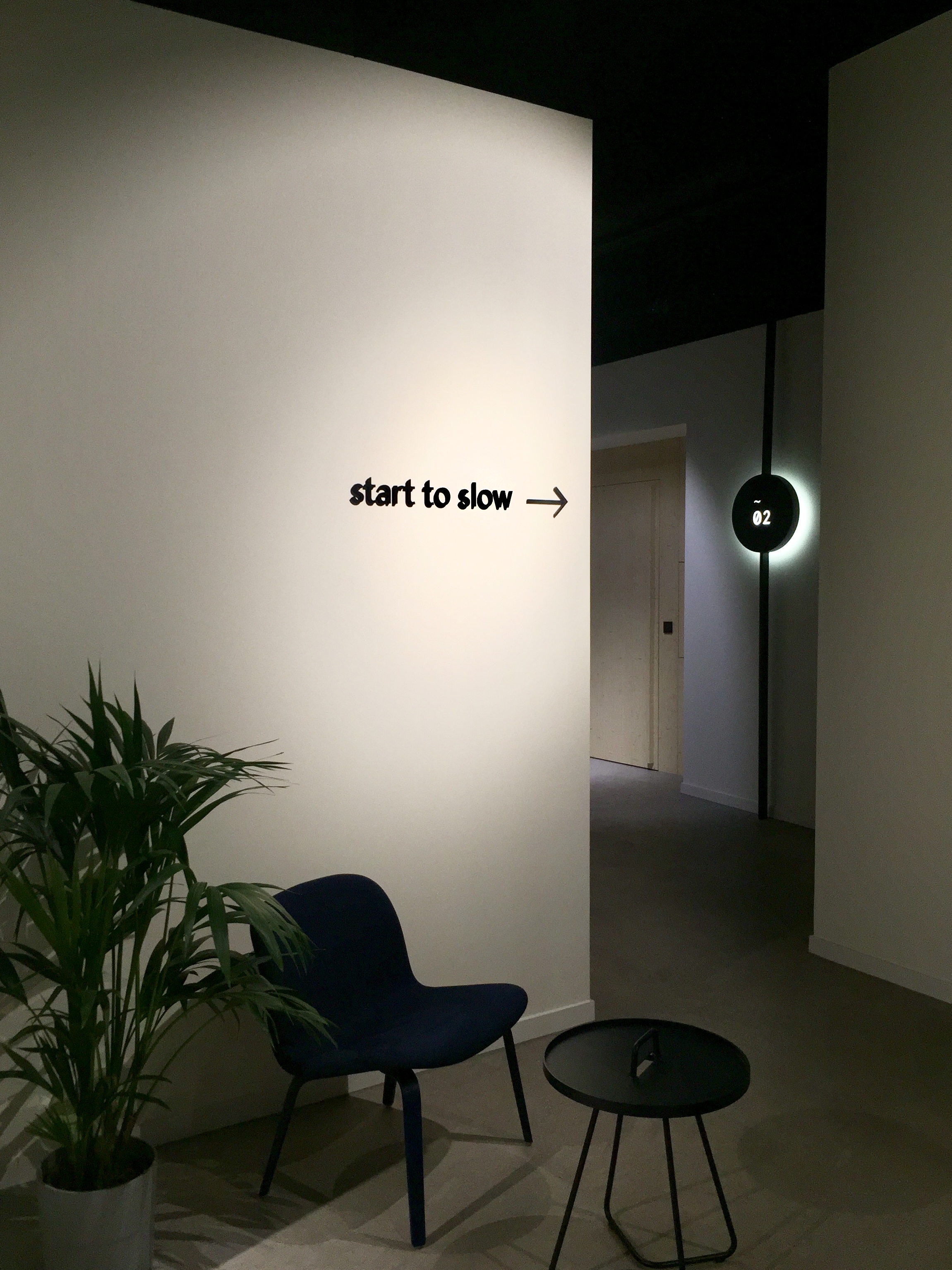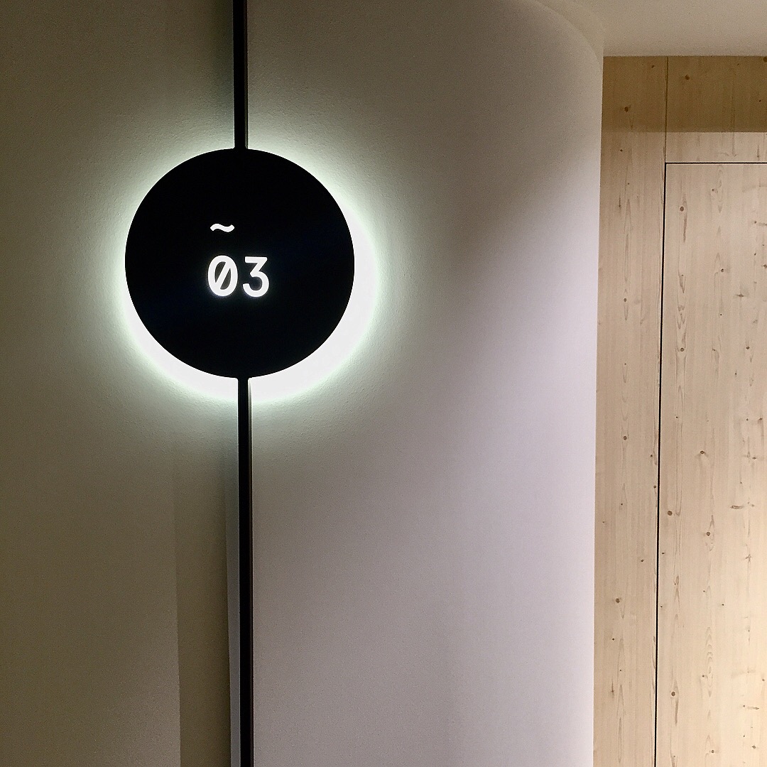für das neue spa-konzept, bei dem jeder kunde sein privates spa buchen und geniessen kann, haben wir eine individuelle nest-beschilderung entworfen und realisiert. die formensprache der Architektur wird aufgegriffen und der besucher wird mit hilfe von beleuchtung und minimaler information zu seinem nest geleitet.
