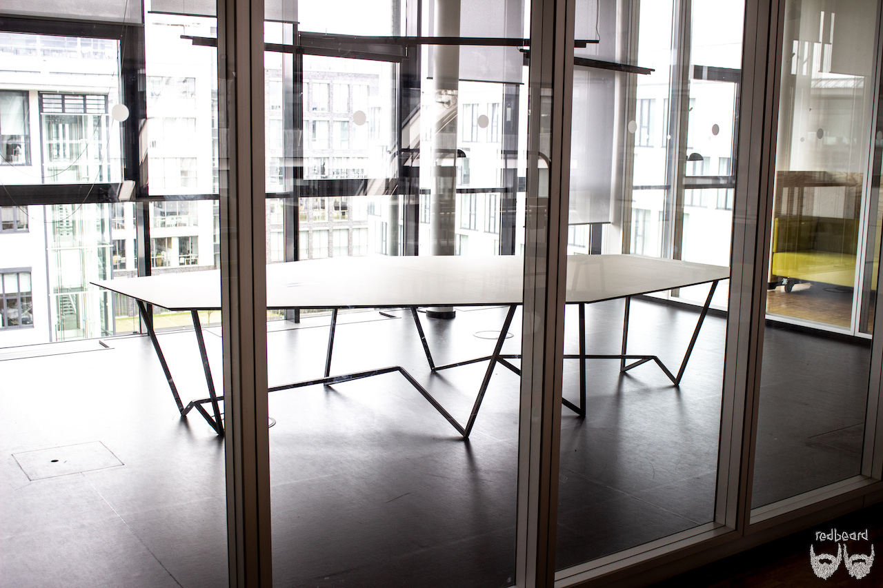 dieser cleane konferenztisch im meadiacom_lab besteht eigentlich aus zwei identischen, ungleichmäsigen tischen.