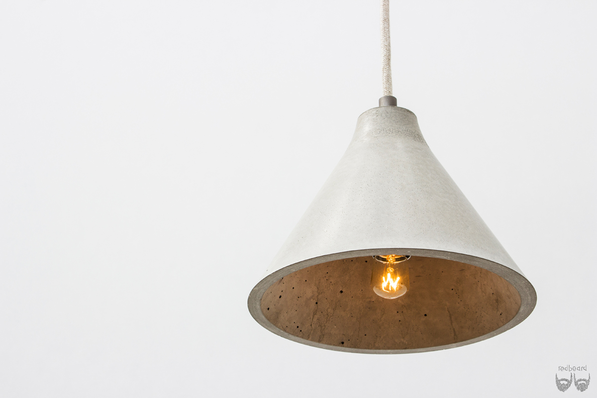 die moderne kegelförmige betonleuchte wird als pendelleuchte montiert. ob als einzelnd oder in reihung gehängt, sorgt die rb02 für eine atmosphärische beleuchtung.