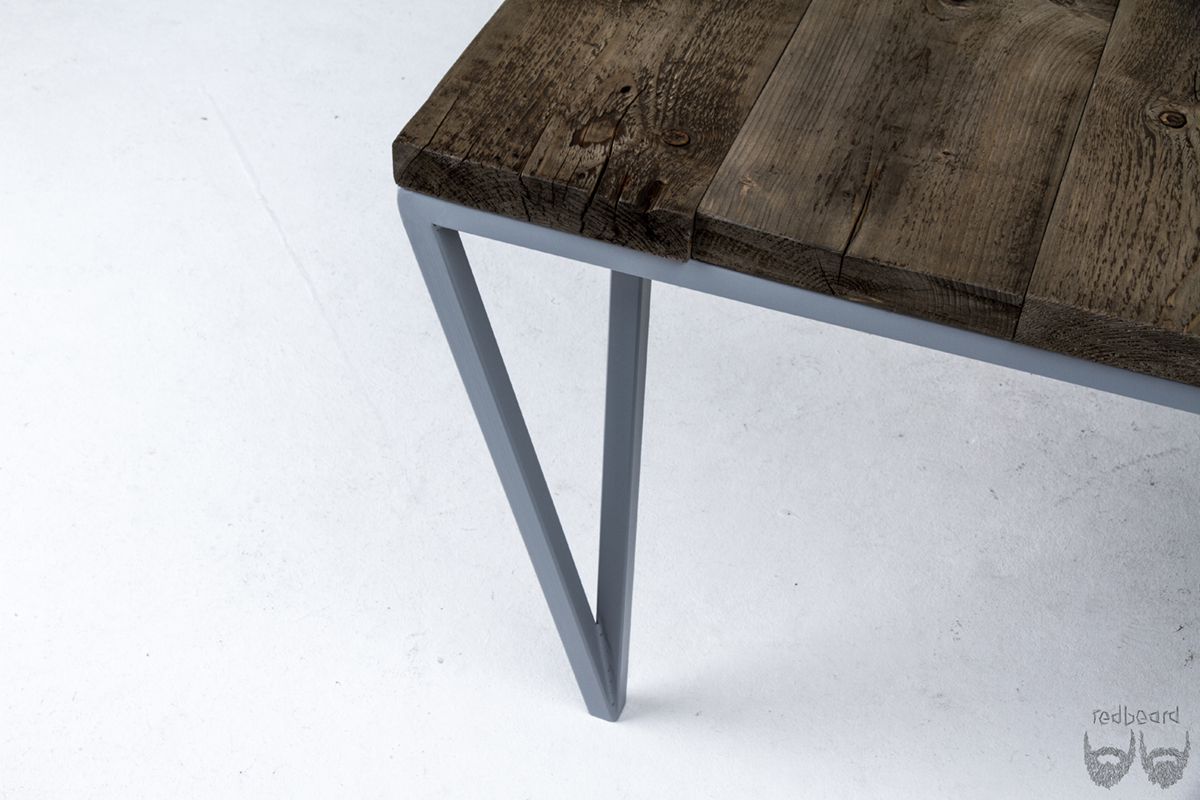 durch die beinahe quadratische tischfläche bietet der kolorz genug platz zum arbeiten und ausgiebigem abendessen mit freunden und familie. die aus recycelten gerüstbohlen gefertigte platte hat trotz der schützenden lackierung eine angenehme, der optik entsprechende haptik. das aus quadrahtrohr geschweißte stahlgestell gewinnt durch die taubengraue lackierung und die detailierte fügung der beine an leichtigkeit und hat eine optimierte ecksitzsituation zur folge.