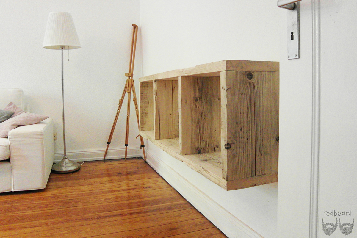 ein einfaches sideboard, das direkt auf dem boden stehen kann oder sich an die wand montieren lässt. nur geschliffen, kein schnick schnack.
