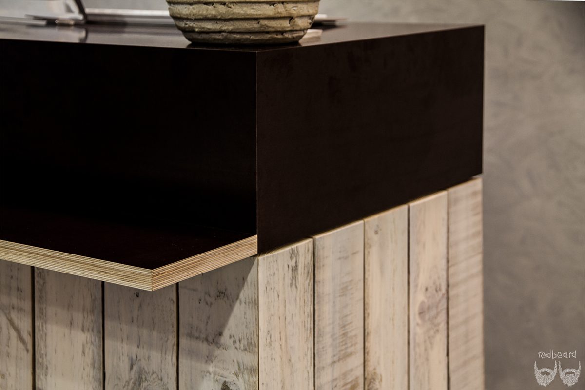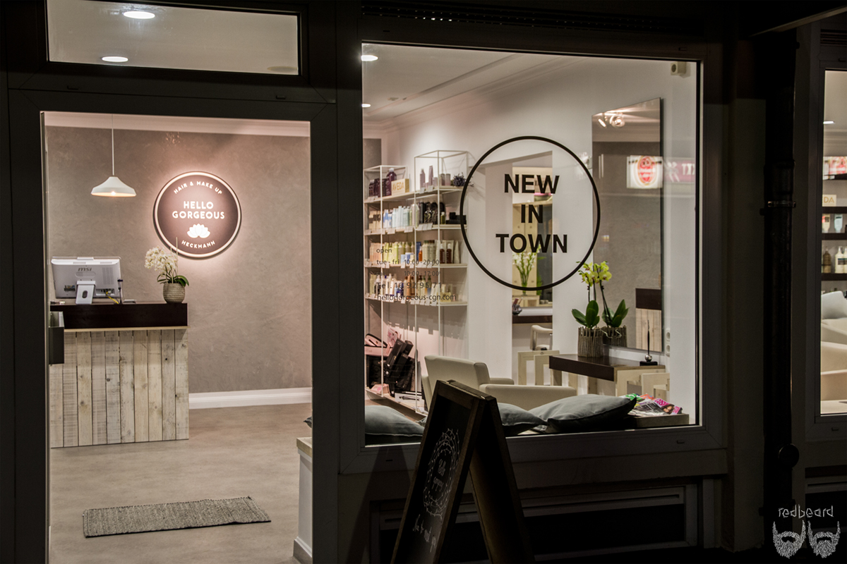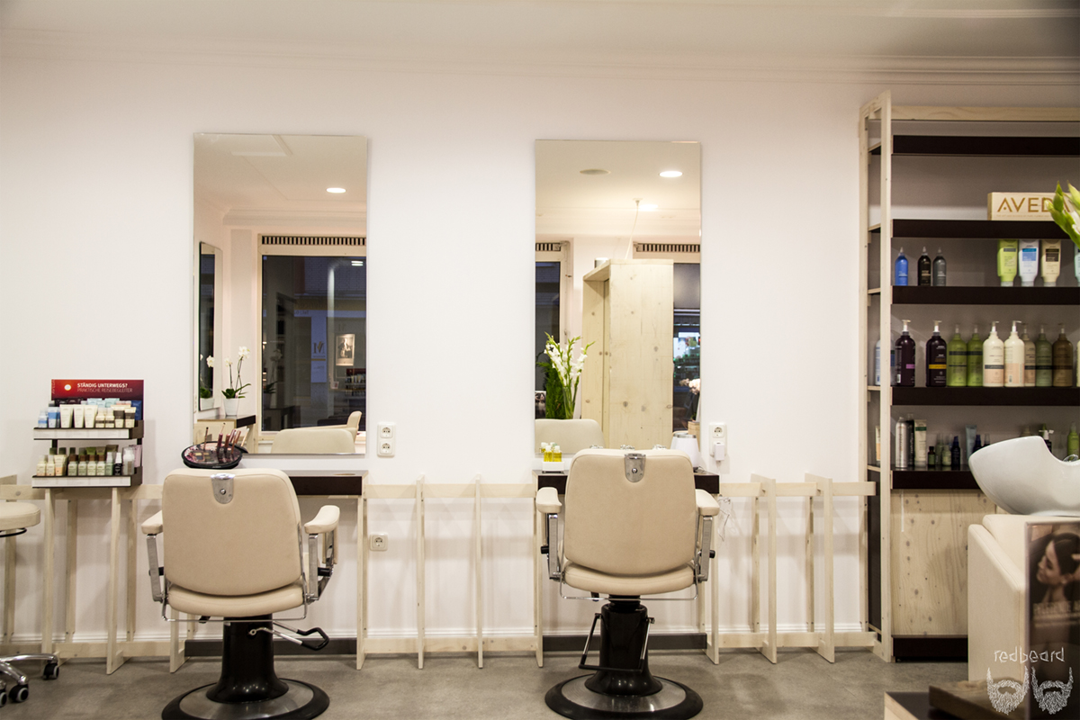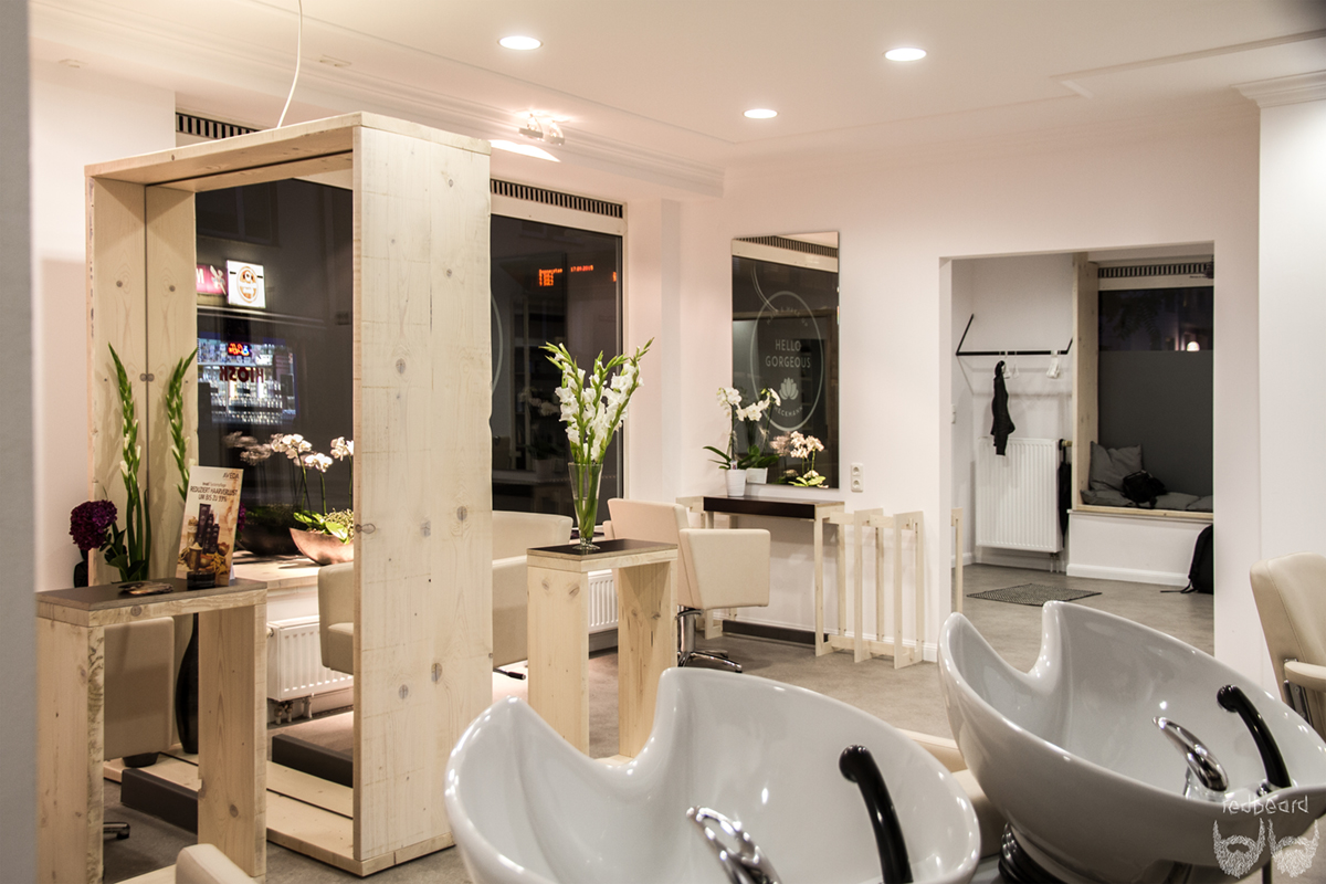den klasischen frisör-salon stil, bestehend aus glasflächen und hochglanz möbeln, haben wir über den haufen geworfen und hello gorgeous mit nachhaltigen, teils recycelten hölzern bespielt.